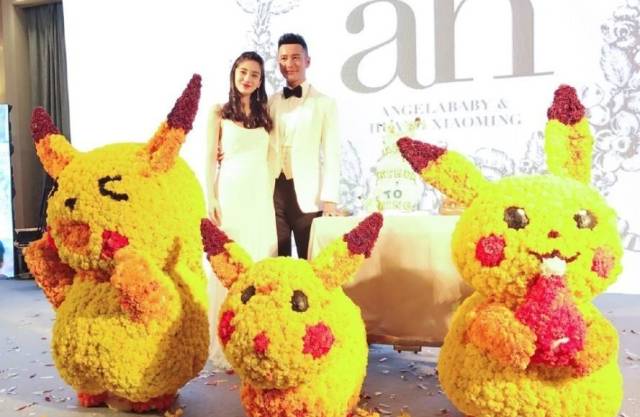婚礼现场用鲜花拼成老婆爱的皮卡丘↓