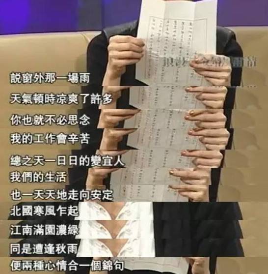 祖峰做客节目时,鲁豫更是朗读了祖峰写的情诗↓