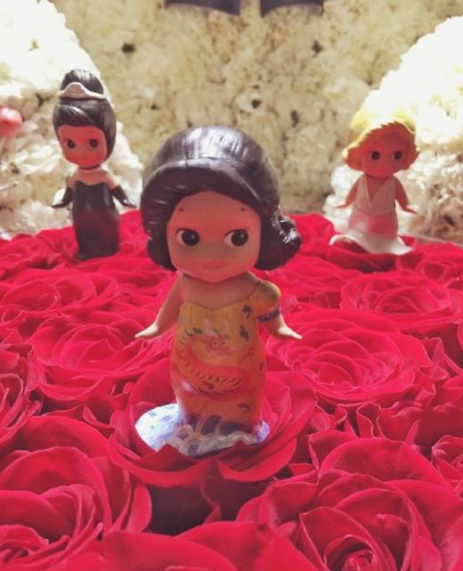 又在七夕献上可爱公仔加火红玫瑰,寓意“一生只送一个人”↓