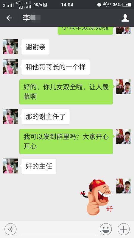 儿女双全,圆梦临沂不孕不育医院。今天下午,李女士通过微信向本院的杜娟主任报喜,感谢“送子妈妈”圆了自己的二胎梦。