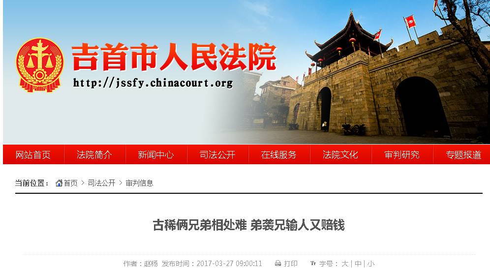 今日,“你好大湘西”(ID:jsqmwh)在吉首市人民法院官网看到,原本关系一直不错的两兄弟,却在宅基地上种下了矛盾,一天双方发生口角后,胞弟见胞兄独自上山,竟然进行殴打报复76岁的胞兄,致使其受伤住院,让人唏嘘!