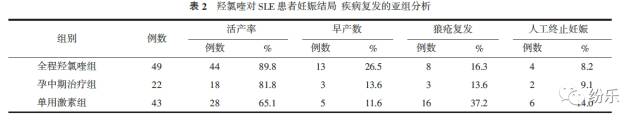 答案是肯定的。浙江省宁波市第一医院风湿科和产科收集2010 年1 月至2015 年12 月诊治的SLE妊娠患者共166 例,均符合1997 年ACR 的SLE 分类(诊断)标准。其中33 例因妊娠前SLE 病情不稳或未停用免疫抑制剂而实施人工流产,19 例为孕期新发患者,余114 例患者孕前已确诊SLE,均使用过肾上腺皮质激素和(或)免疫抑制剂治疗,在妊娠前1 年内SLE 病情稳定,无心、肺、肾、中枢神经系统等重要脏器损害(SLEDAI 评分≤4 分),并且停用免疫抑制剂6 个月以上,妊娠前期服用小剂量激素(泼尼松≤15 mg/d),羟氯喹孕期用量为0.2 g/d。114 例患者中妊娠期间泼尼松联合羟氯喹治疗71 例(62.3%);单用泼尼松治疗43 例(37.7%)。