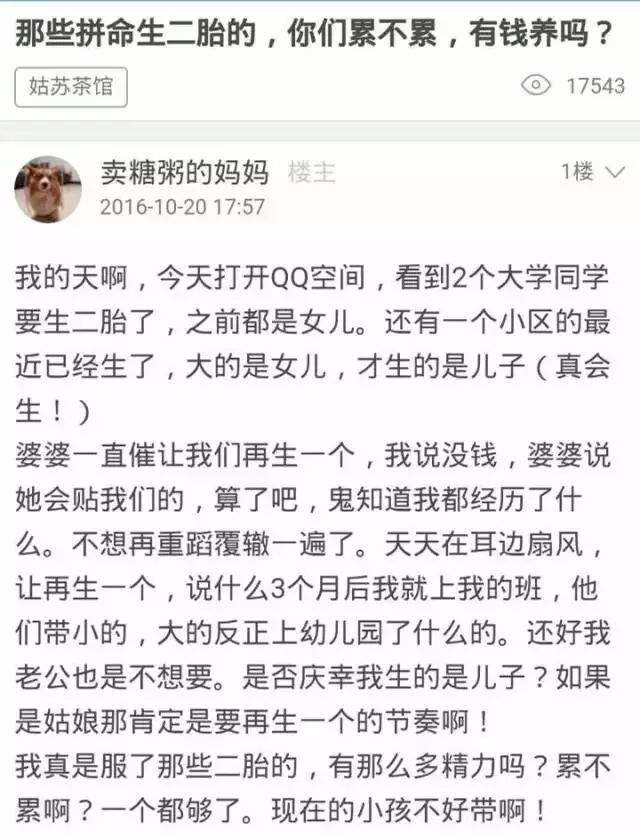 关键问题是,时代不同了。人的生活最低标准和适宜标准都在进步,养活二胎,至少差不多要满足适宜标准的话,生活才不会太差。我们父辈那一代,很多人初中后就不念书去上班了,现在难道也可以这样吗?养得活孩子和养得好孩子是很大的差距!谁也不想自己的孩子输在起跑线上吧!