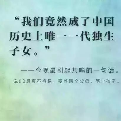 @苗妈卖树:细思极恐:80后真是奇葩的一代,自己出生的时候,突然就独苗了,没有兄弟姐妹,打架都没人帮忙。好容易长大了,又鼓励多生孩子,要准备照顾四个老人,再养两个孩子,最后再帮两个孩子带四个孙子……