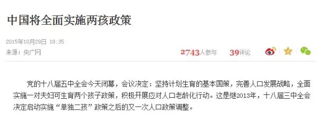 且不说这个,单说生二胎这个事,昨晚消息一出,大家有没有感觉二胎一开放,祖国经济就会腾飞的赶脚……