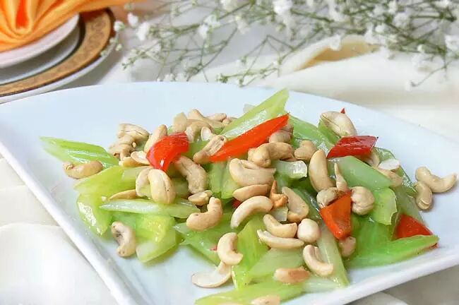 01 class 西芹腰果虾仁 西芹腰果虾仁味道可口,而且食材丰富,可以为孕妇提供充足的营养。制作西芹腰果虾仁所需要的食材有:适量虾仁、熟腰果和西芹,准备盐5克、姜5克、鸡粉2克、胡椒粉(白)2克、还有适量的植物油和料酒。准备好这些食材后,将虾仁、西芹、腰果洗净备用,西芹要切断,虾仁要用白胡椒粉、盐和少许料酒腌20分钟。然后锅内置油加热,放入姜片爆香,倒入虾仁炒好备用。最后在锅内放少许油,将西芹放入炒好,把虾仁倒入翻炒并加入鸡粉和盐,然后将腰果放进锅内炒一下即可。