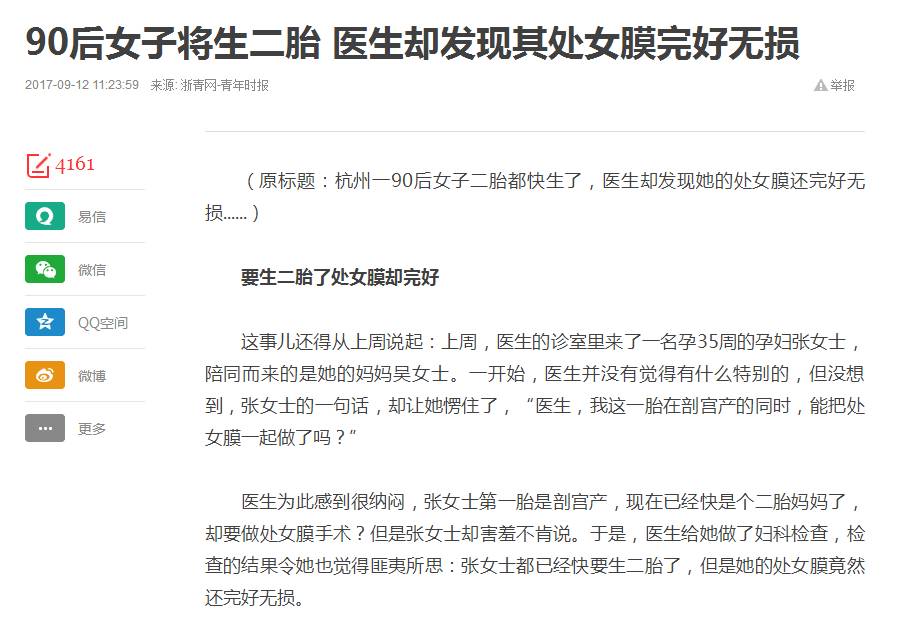 新闻中的二胎妈妈,大约就是弯月状的处女膜。