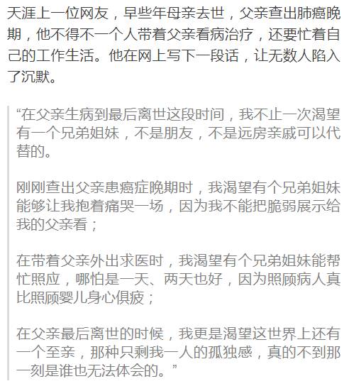 不是因为有时间,有钱,也不是因为一定要生个男孩或女孩,只是因为在这个充满竞争、人情冷漠、充满功利的时代,父母最重要的不是给孩子留下多少金钱和房子,而是给他留下一个亲人。