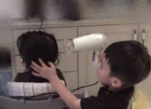 再或者哥哥贴心的为妹妹吹头发,暖心到不行!
