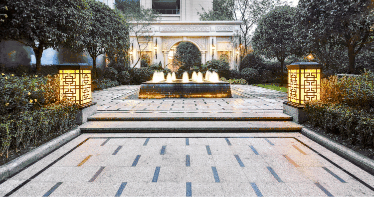 而在园林打造上,更是将自身的法式园林体系,巧妙地与江安河形成无缝连接;将内部景观与外部景观巧妙融合,带来移步易景的景观体验。