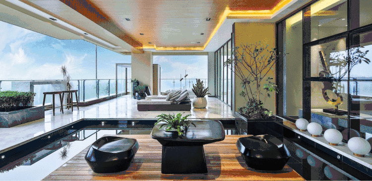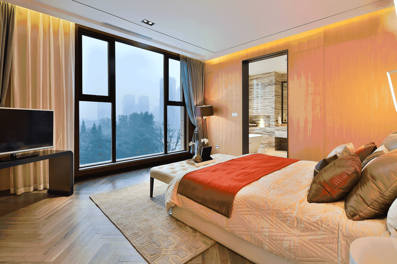通过一层一户设计,解决了别墅楼梯的羁绊,让家人之间靠的更近。客厅、阳台、花园,卧室开窗及建立室外观景平台等方式,将全景平墅的观景视角提升到360°,环绕式观景视角,保证每个空间都能享有室外风景。