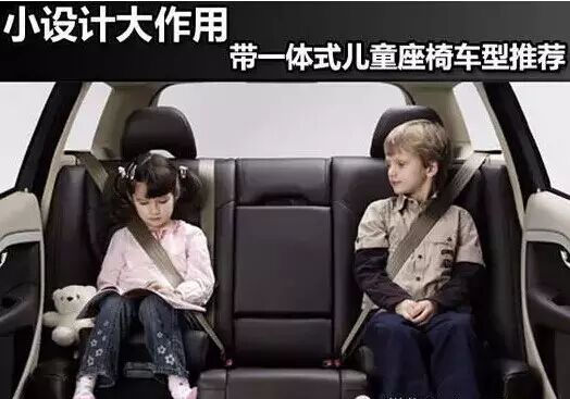 原车自带一体式儿童安全座椅,这在同级车型中是独树一帜的,加上自带儿童安全座椅采用双肩式安全带,有效避免了安全带绕颈等导致的危险,让你的孩子在车内更为安全。