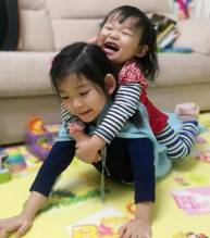 看起来她浪费了好多时间,玩着那些与她的年龄不相称的游戏,该练的琴没有练、该做的题没有做,甚至又开始像小宝宝一样地哭。一开始我们也想改变这种情况,想让姐姐去做“她该做”的事。但后来我放手了,因为那是不可能的,孩子在一起就是想互相模仿,而我觉得这是她们亲密关系的开始。