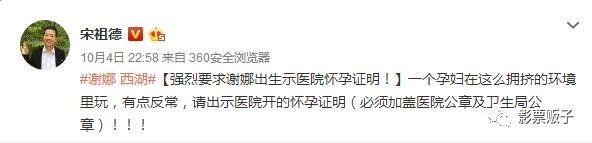 但宋祖德却发微博质疑称:“强烈要求谢娜出示医院怀孕证明!”