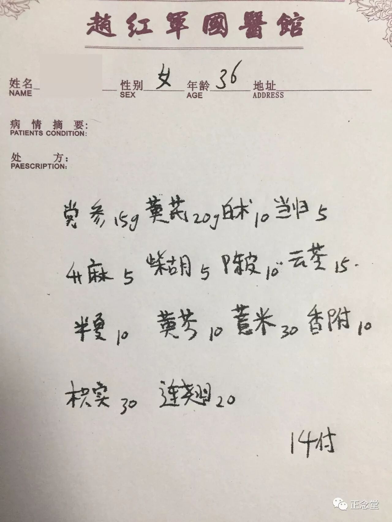 正念堂微信订阅号由医馆学员编辑发布,文章内容仅代表作者观点,仅供临床思路参考,非专业人员请勿试药。其中有部分订阅号内容来源于网络,凡文章有作者的我们即署原作者名称,但也有些文章找不到出处,没有署原作者,在此谨向原作者表示感谢和歉意,并请您及时和我们反馈联系,以便我们完善改正!需要购买书籍资料的请加赵红军国医馆QQ:1828055349,或者打前台电话:029-62581091 18192056675。