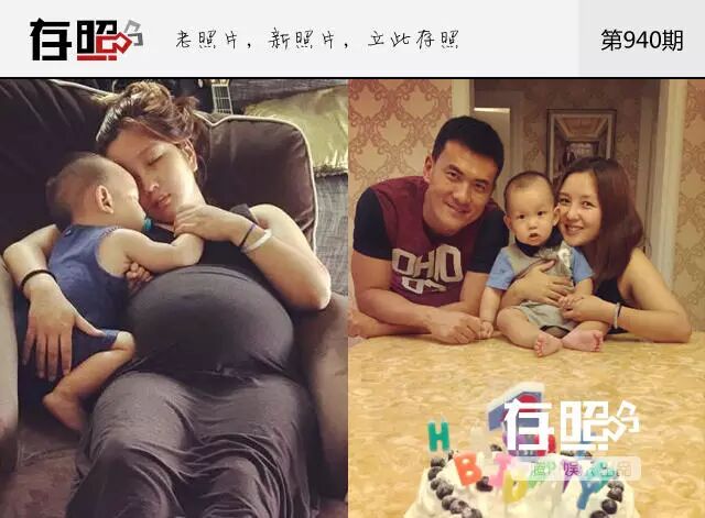 ▲图左何洁再怀二胎,图右何洁与老公儿子