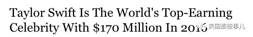 在2016年福布斯统计的“收入最高的名人”中,霉霉位列第一,仅仅一年时间,她就赚了1.7亿美元。