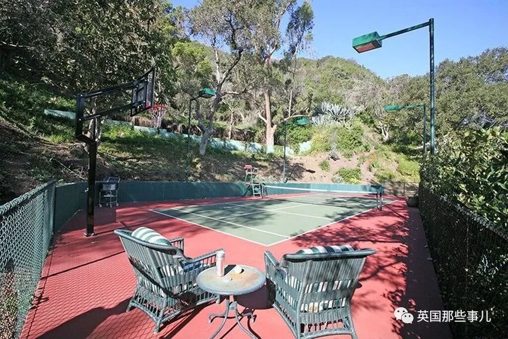 里面有7个卧室,10个卫生间,还有网球场和小影院。