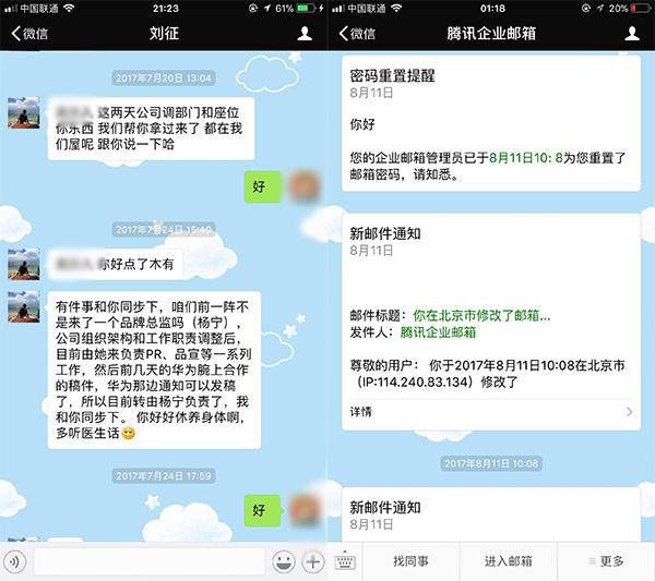 没想到在7月24日,刘女士在微信上接到CEO李宇欣助理的通知:由于公司架构调整,你的办公桌暂时被清理,办公用品已被代为保管。并且,没有任何人告知刘女士她在公司中担任何种职务。