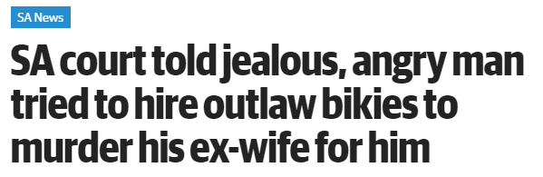 这样做后,这名男子感到仍不解恨,于是他打算花$40000澳元雇来飞车党把妻子“做掉”。据悉,他现是支付给飞车党$20000澳币的定金,等事成后再付清另外一半。