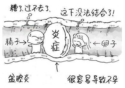 造成输卵管不通或功能障碍的原因大多是炎症引起的。国外资料表明妇女如果曾经有过一次盆腔炎发作,就有15%不孕的危险性,两次感染后,有15%的危险性;三次感染后,不孕症的危险性几乎上升至75%。盆腔炎主要造成输卵管及周围组织的炎症。严重的输卵管炎症可造成输卵管完全不通,有些炎症虽未造成输卵管管腔堵塞,但卵管的内膜受损影响内膜细胞的纤毛运动,并且由于瘢痕形成使输卵管壁僵硬,影响输卵管蠕动,从而影响精子和卵子的相遇和运送而致不孕。