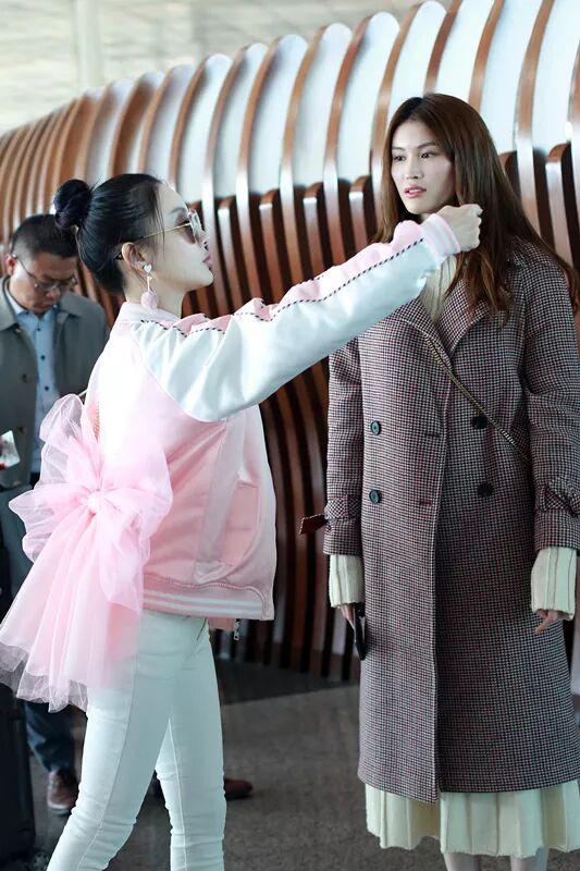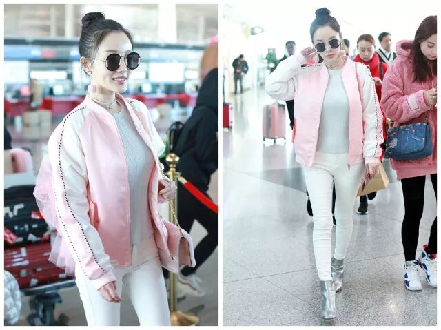 前一段时间李小璐的一套粉白装扮还因为吓呆了何穗,上了一次热搜,正面,关晓彤来穿都可以,挺好: