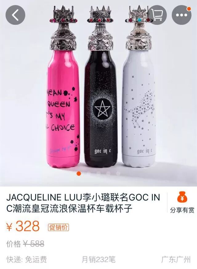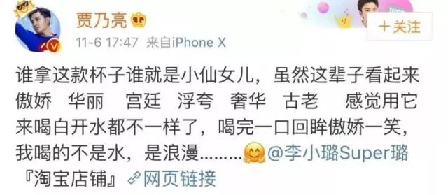 比如店里一挺贵也挺杀马特的“潮流皇冠保温杯”,有老公贾乃亮亲自打call: