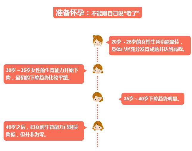 从研究得来的数字也可以看出,在年龄大于30岁有生育愿望的妇女中,1年内怀孕的比率为75%;35岁时下降为66%;40岁时比例仅为44%。
