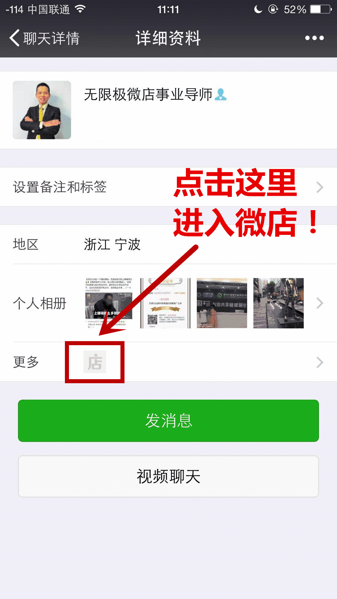 把无限极专卖店开到你的手机里,别人点击你的微信头像,在“更多”的地方点击“店”,就可以进入你的网上专卖店购买无限极产品。