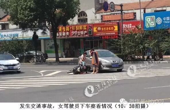 ````````我作为一个路人,对于这样的轻微的交通事故也不想多说,本来,一个女人无照驾驶并且逃逸已经违法,作为这个女人的丈夫返回现场使用调包计,更应和和气气打个招呼,哪怕人家是外地女人,也要首先好好的询问一下对方的有没有受伤才算男人,才是正理,我作为局外人也不会多言;但现在这个男人不但不意识到自己的违法事实,而且还要对人家骂骂咧咧,一副老气横秋的样子,这还算人吗?有道是:歪风邪气不可留,道路不平众人踩,现在我提供证据给交警大队(另外路口有城中派出所的治安探头,有录像可以核实),希望你们秉公执法,彰显溧阳正气!