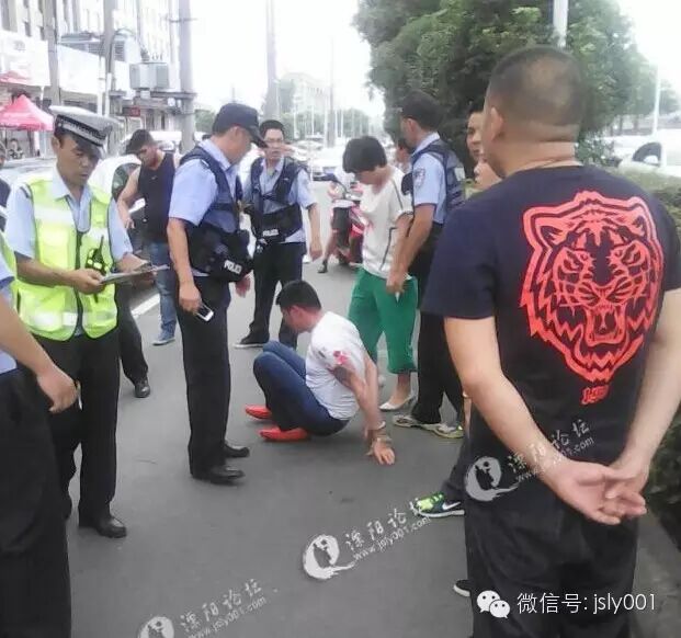````````@网友“关山”:昨天下午15:40分左右,在三和转盘处发生一起打架斗殴事件。据目击者说,打斗很激烈,互相追打,互不相让,一人还带了一把菜刀。三人不同程度都受了伤,一人手上血淋淋,另一人脖子上挂了彩,据说可能是因为赌博债务问题引发的事件,接警民警迅速赶到现场,但这其中一人并不省油,继续追打,民警迅速出手,制服了肇事者,平息了事态,三名肇事者分别被警察带回所里。
