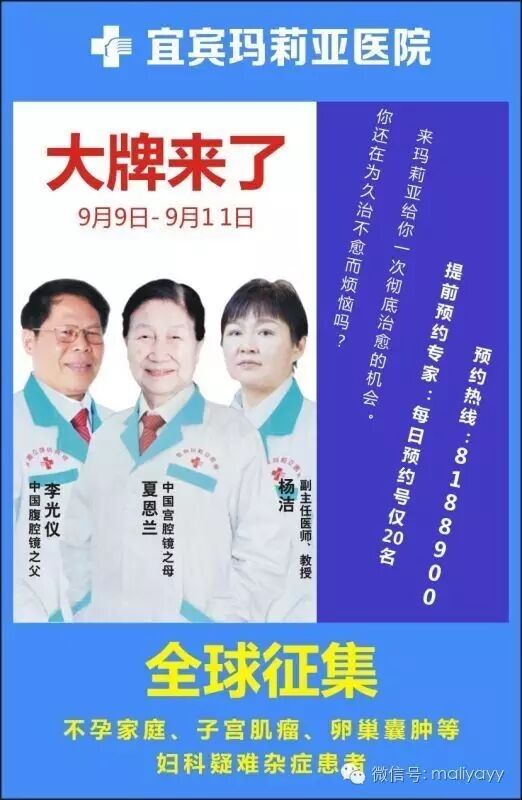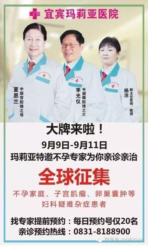 如果想要得到有效治疗建议、早日拥有好孕,请把握机会到宜宾玛莉亚医院,让专家助您开启直通好孕之路!有意者可直接电话或微信咨询,进行在线专家一对一咨询。