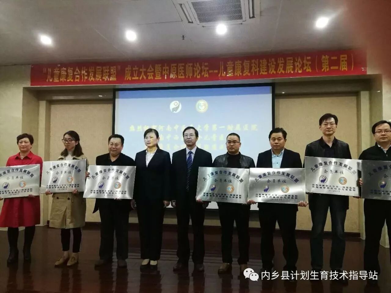 内乡县生殖保健医院(内乡县计划生育指导站)接受河南中医药大学第一附属医院颁发儿童康复合作发展联盟牌匾。