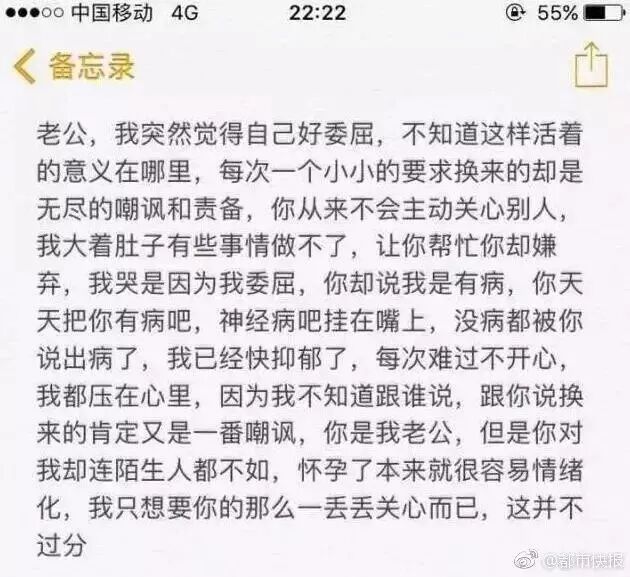 我的一个朋友,曾声泪俱下地跟我控诉丈夫的种种不是。