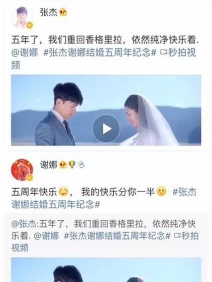 2016年9月26日,张杰谢娜结婚5周年,两人重回香格里拉,还原了他们最纯真的感情