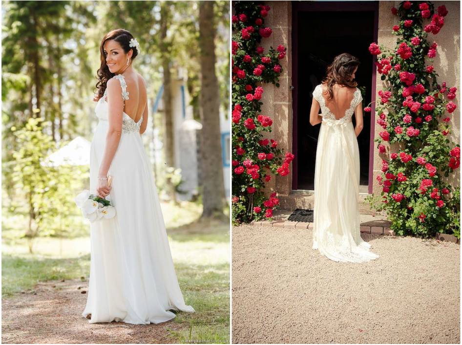 怀孕的新娘,胸有可能从A直接涨到D噢(期待吗!),此时就不太适合抹胸设计的婚纱了,沉沉的胸部借不到力,也许会下垂。