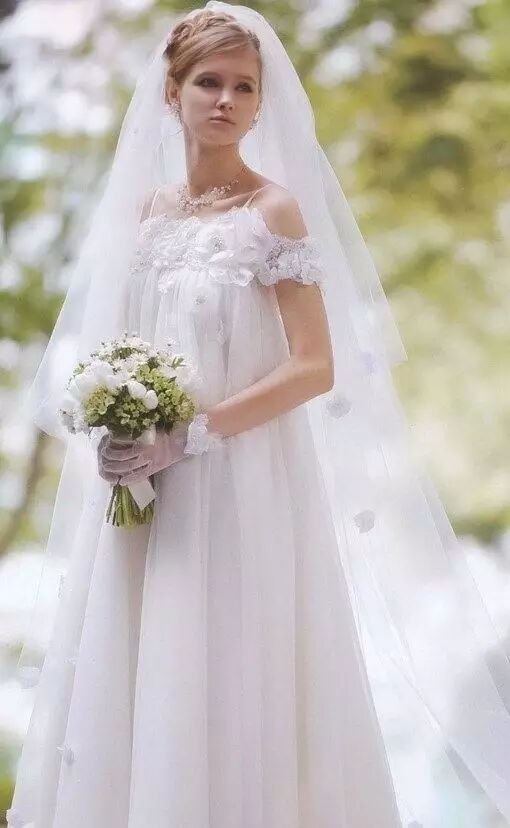 ♡ 怀孕四个月以内的新娘们,依旧可以大胆选择。款式要庄重,颜色活泼一点也可以~