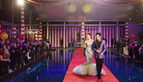 又如天王嫂昆凌。据台媒报道,台北婚礼之时她已有三个月身孕。可她依旧一袭紧身鱼尾婚纱,果真美得好任性!