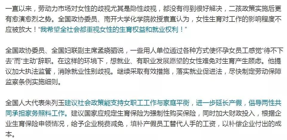 由于生育成本、经济负担、照料负担等问题,相当一部分家庭“不敢生、不愿生”。如何解决“二孩妈”的后顾之忧?今年多位人大代表和政协委员,就如何完善二孩配套政策、激发政策活力发表了建议。