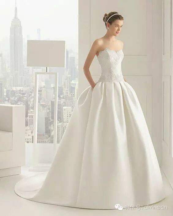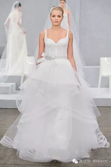 双肩带礼服可以带给特殊时期的新娘以安全感,至少不用更换内衣,这样就能多很多安全感,在冬季更是如此。收腰的上衣款式可以将视觉焦点集中在上半身。