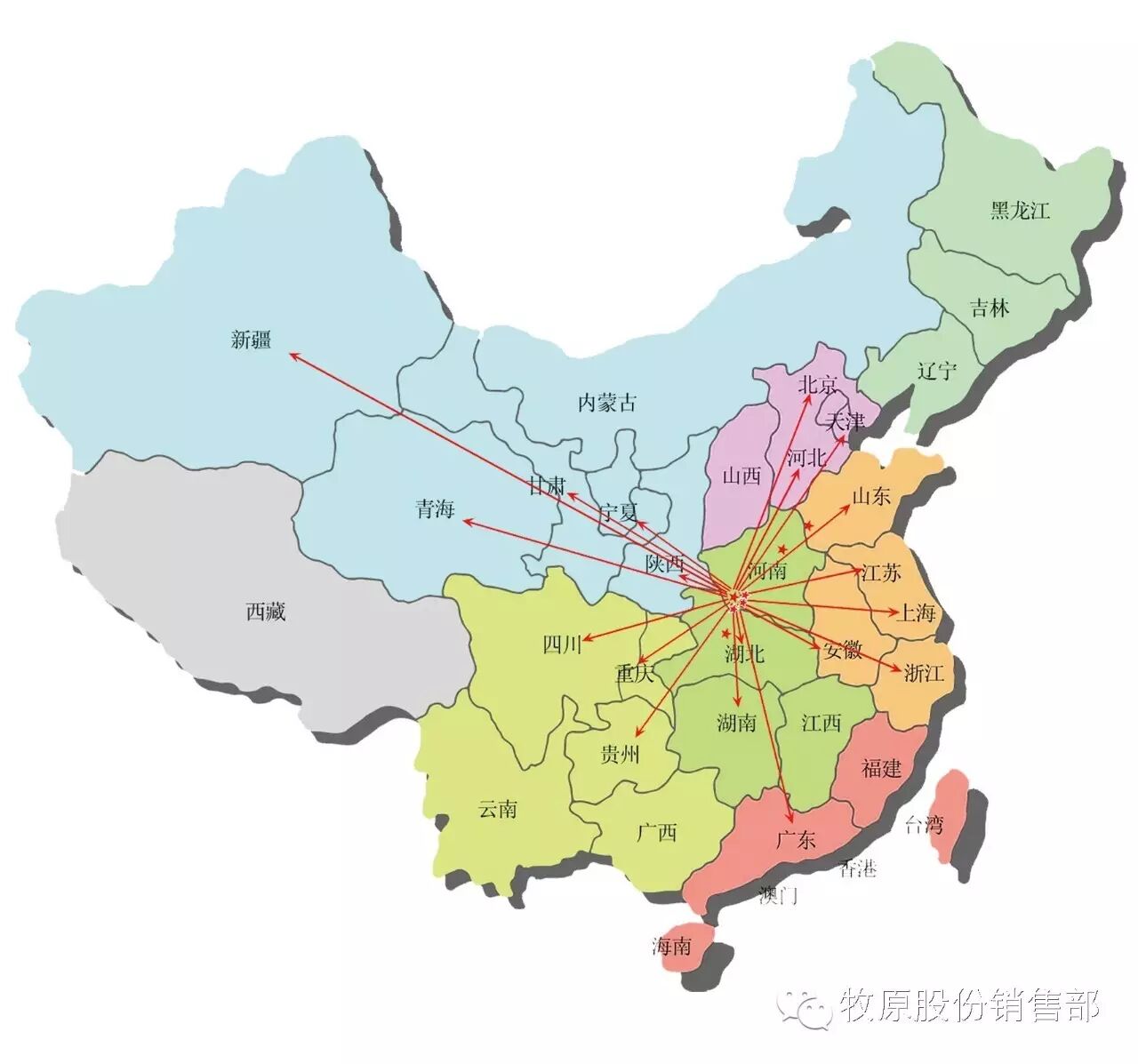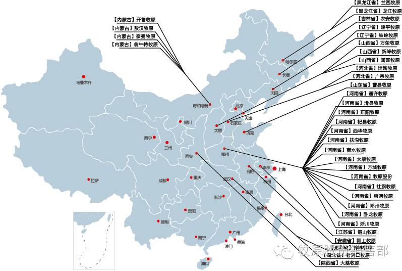 牧原股份是集团下属上市公司,养殖基地集中在河南、湖北、山东、山西、陕西、内蒙古、黑龙江、吉林、辽宁、江苏、安徽等12省35区县,生产的商品猪、仔猪、怀孕母猪产品能够充分满足适销区对优质猪源的持续需求。