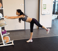 手扶支撑物,腿部伸直向后抬起,臀部用力