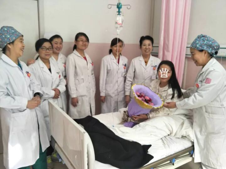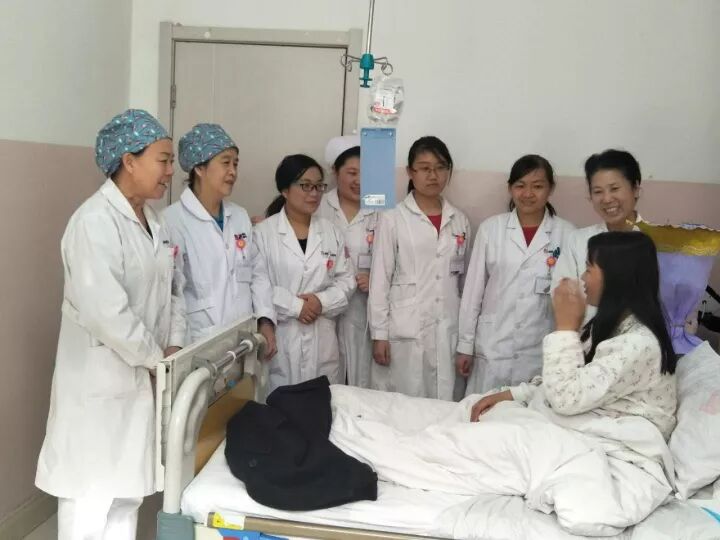 2017年11月14日上午,我院吴晓梅主任带领住院部全体医护人员手捧鲜花去看望术后患者桑吉女士,详细询问了病情的恢复情况,并叮嘱她安心养病,积极配合治疗,争取早日怀上健康可爱的宝宝!