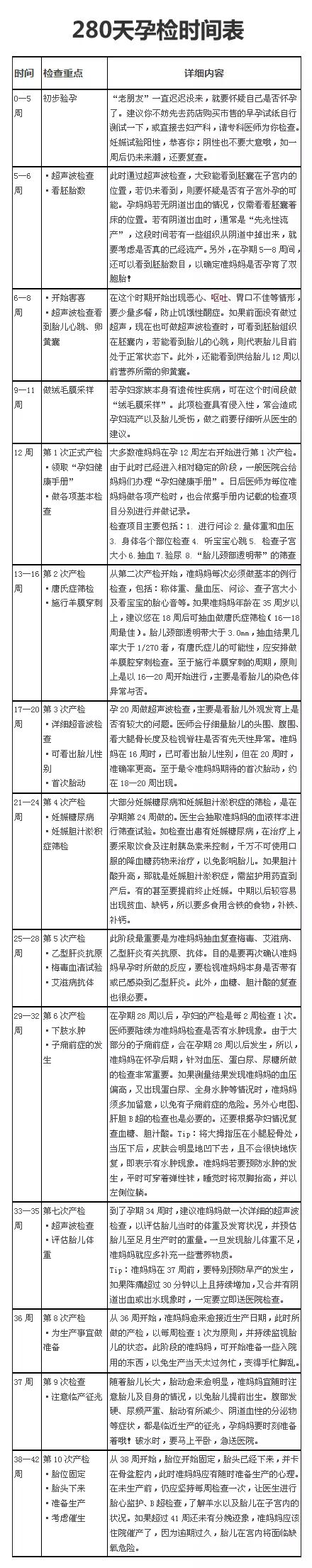 另外,小编还给准妈妈们准备了一份【280天孕检时间表】。