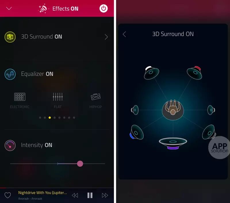 3D 环绕音效可以提升听觉上的空间感,用户甚至可以选择发声的「扬声器」,来模拟不同的音场。3D 环绕的效果见仁见智,毕竟并非每个人、每首歌都适合这个声音效果器。