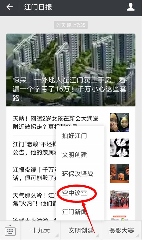 方式二:关注“江门日报”官方微信(jm_daily),点击底部菜单“空中诊室”,即可参与互动;