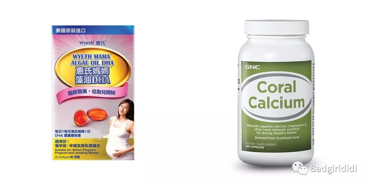 很多准妈妈三个月以后就不吃叶酸了,但是我妈让我从三个月开始添加DHA和钙片,并且一直吃到恬恬出生。DHA主要帮助宝宝大脑发育,我吃的都是惠氏的。钙片主要帮助宝宝骨骼发育的同时也给妈妈补钙,整个孕期我都没有腿抽经,孕晚期很多准妈妈腰酸背痛,但我也没有这种情况,逛街健步如飞,我自己觉得也得益于及时补钙。钙片我吃的是GNC的珊瑚钙,也是碳酸钙的一种,有很多准妈妈吃了钙片容易便秘,可以换成柠檬酸钙缓解,我自己孕期每顿都逼自己吃很多青菜,我觉得吃这个钙片对我来说影响不大。