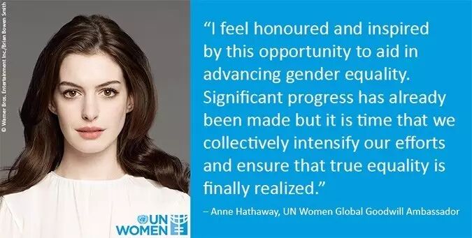 早前,联合国妇女署认命安妮·海瑟薇为global Goodwill Ambassador(全球亲善大使)。