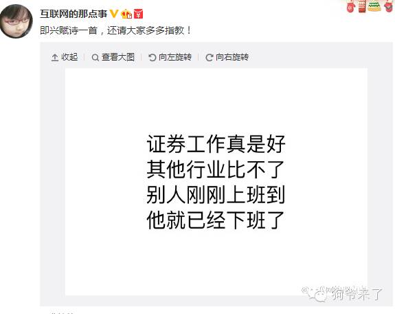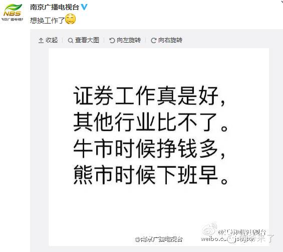 >共同的天空:好羡慕在券商上班的人呀,上班15分钟就下班了,剩下都是打酱油时间
