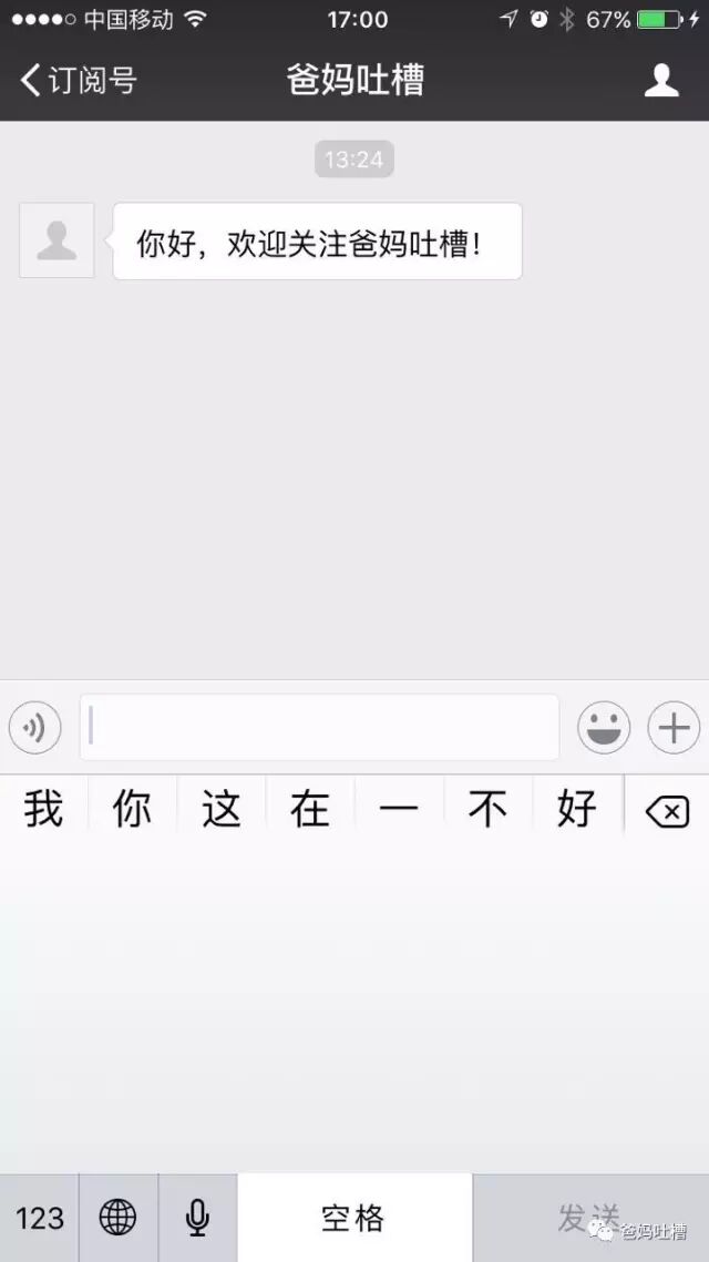 进入【爸妈吐槽】(微信号:bamatucao)的主界面。